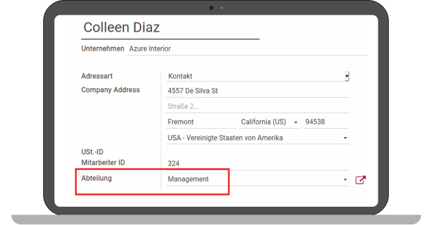 With the One2many field, a relation can also be included in the field. Here the address of the employees was selected in the dropdown.